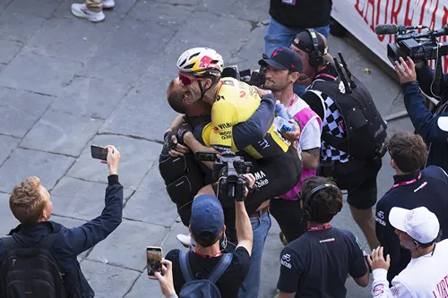 De combinatie van gravelstroken, steile hellingen en technische passages bleek hem perfect te liggen. Zijn kracht, explosiviteit en stuurvaardigheid – kwaliteiten die hij uit het veldrijden meebracht – kwamen op het Toscaanse terrein volledig tot hun recht.Twee keer herrezen: De koers kreeg nog meer betekenis in 2020. Van Aert won toen Strade Bianche na een indrukwekkende solo in de straten van Siena. Het was een van de eerste grote overwinningen in zijn wegcarrière en bevestigde zijn status als klassiekerspecialist.