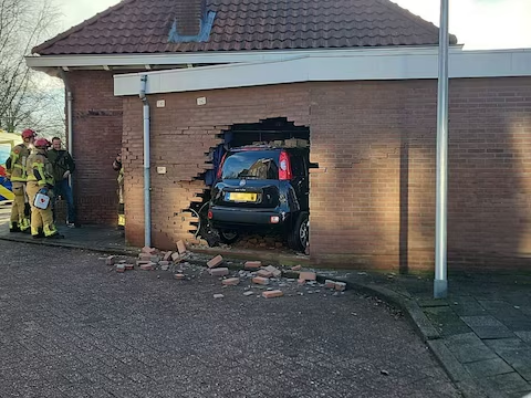 Het ongeluk gebeurde rond kwart voor vier in de Binnengasthuisstraat. Op foto’s is te zien hoe de auto – een zwart Fiat Panda – bijna volledig naar binnen is gereden. Hoe dat kon gebeuren is nog niet duidelijk.