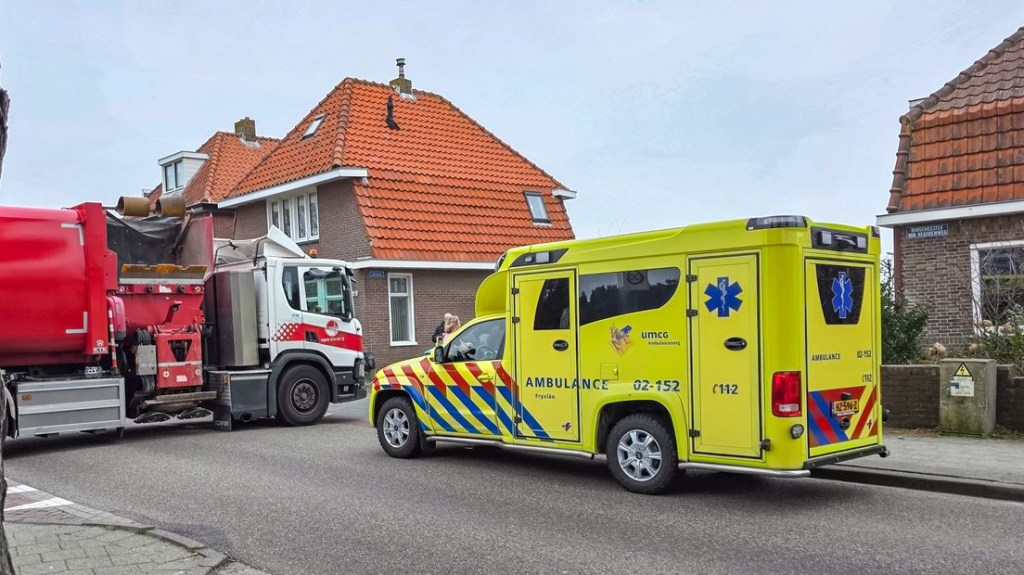 Bij een aanrijding met een vuilniswagen in West-Terschelling is een fietser gewond geraakt.