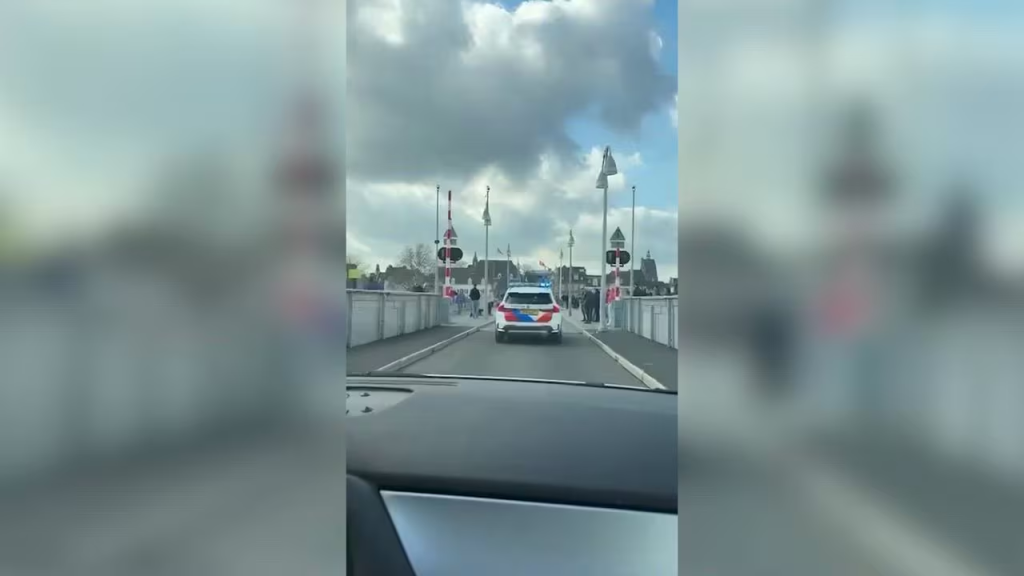 Links: de spoedcolonne door Maastricht. © RV / EPA