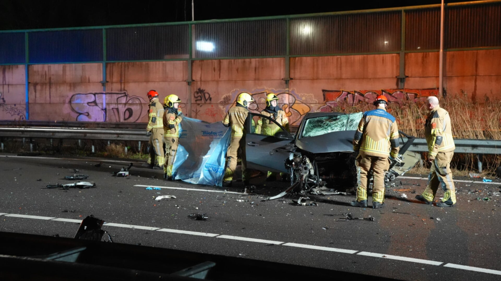 Een van de auto’s die betrokken was bij de aanrijding op de A59