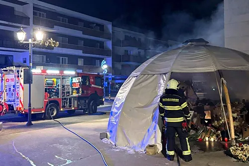 Het met bloemen, kaarsen en gedenkkaartjes gevulde kraampje was vlakbij de plaats van de tragedie neergezet. Het vatte zondagochtend kort voor 6 uur vlam, aldus de regionale politie in het zuidwestelijke kanton Wallis in een verklaring.