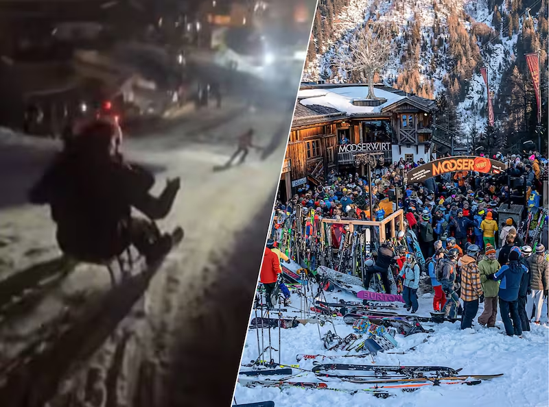 Op de beelden die online circuleren is het onmiskenbaar. Een Nederlandse jongeman, met een bierglas stevig in de knuisten, springt op een slee. Een kameraad duikt achterop en met een noodgang glijden ze de heuvel af.