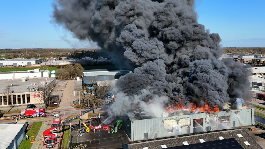 In een pand van industriebedrijf MTH in Hoogeveen is vanmiddag rond 12.15 uur een grote brand uitgebroken. Het pand aan de Stephensonstraat is niet meer te redden en daarom laat de brandweer het gebouw gecontroleerd uitbranden. Er is veel zwarte rook te zien.