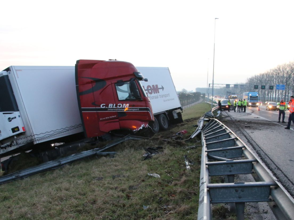 Een vrachtwagenchauffeur is donderdagochtend op de A12 bij Bleiswijk dwars door de vangrail gereden en tot stilstand gekomen naast de snelweg. De rechterrijstrook tussen Reeuwijk en Bleiswijk is dicht en de vertraging is ongeveer veertig minuten.