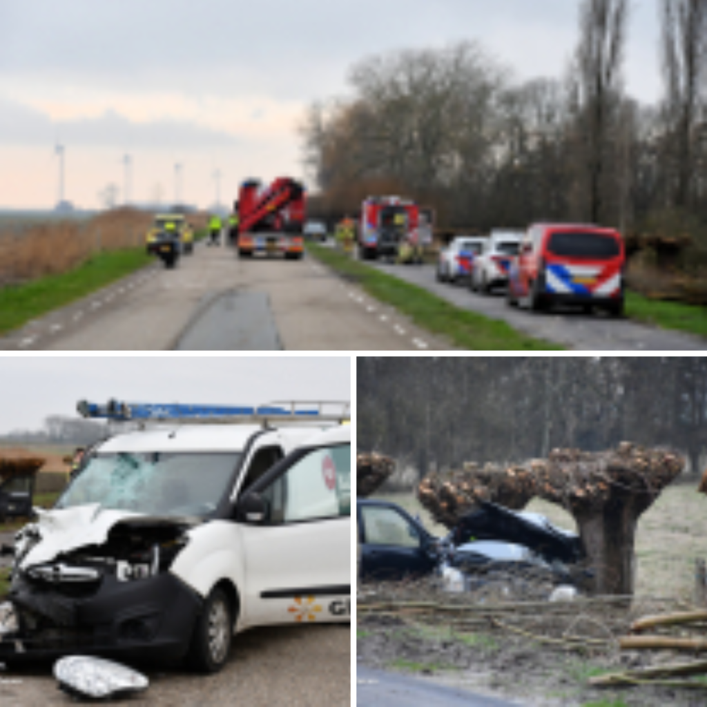 Op de Rijksweg kwamen omstreeks 16.05 uur een personenauto en een bedrijfsbusje met elkaar in botsing. Mogelijk heeft er een bijzondere verrichting aan het incident voorafgegaan. De personenauto werd door het busje aan de achterzijde geraakt en vervolgens schoot de auto door en kwam tegen een knotwilg tot stilstand. De brandweer kwam met meerdere voertuigen ter plaatse om de betrokkenen te bevrijden. Drie ambulances en een traumahelikopter werden opgeroepen. De helikopter landde na een vlucht van ongeveer een kwartier op de weg.