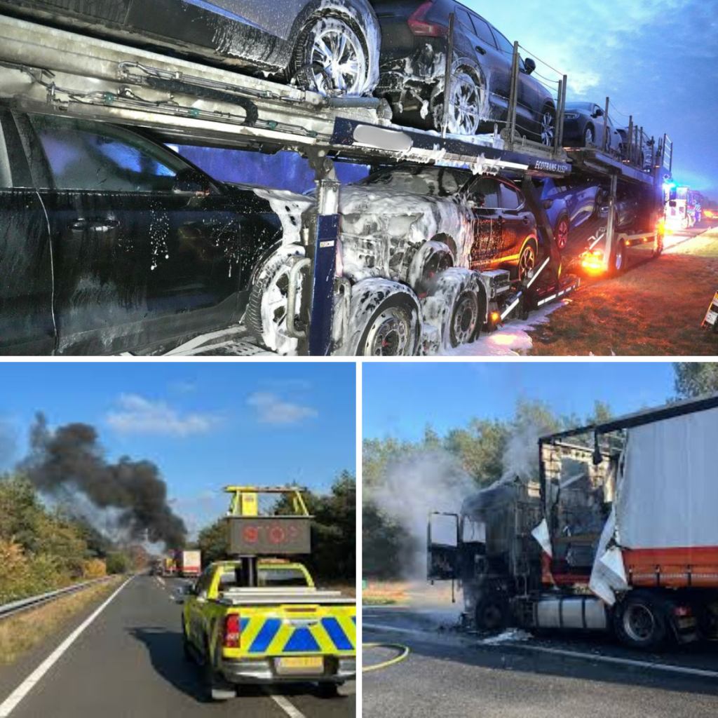 Op de A28 tussen Meppel en Hoogeveen is vanochtend brand ontstaan onder een oplegger van een vrachtwagen. De vrachtwagen vervoerde meerdere auto’s.