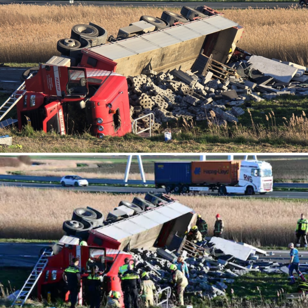 De chauffeur liep zelf naar een van de ambulances. Voor zover bekend is hij niet ernstig gewond geraakt. De brandweer verleent ondersteuning bij de afhandeling van het incident.