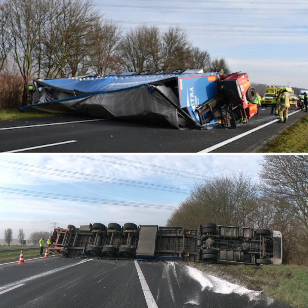 A58 uren dicht door gekantelde vrachtwagen bij Rilland
