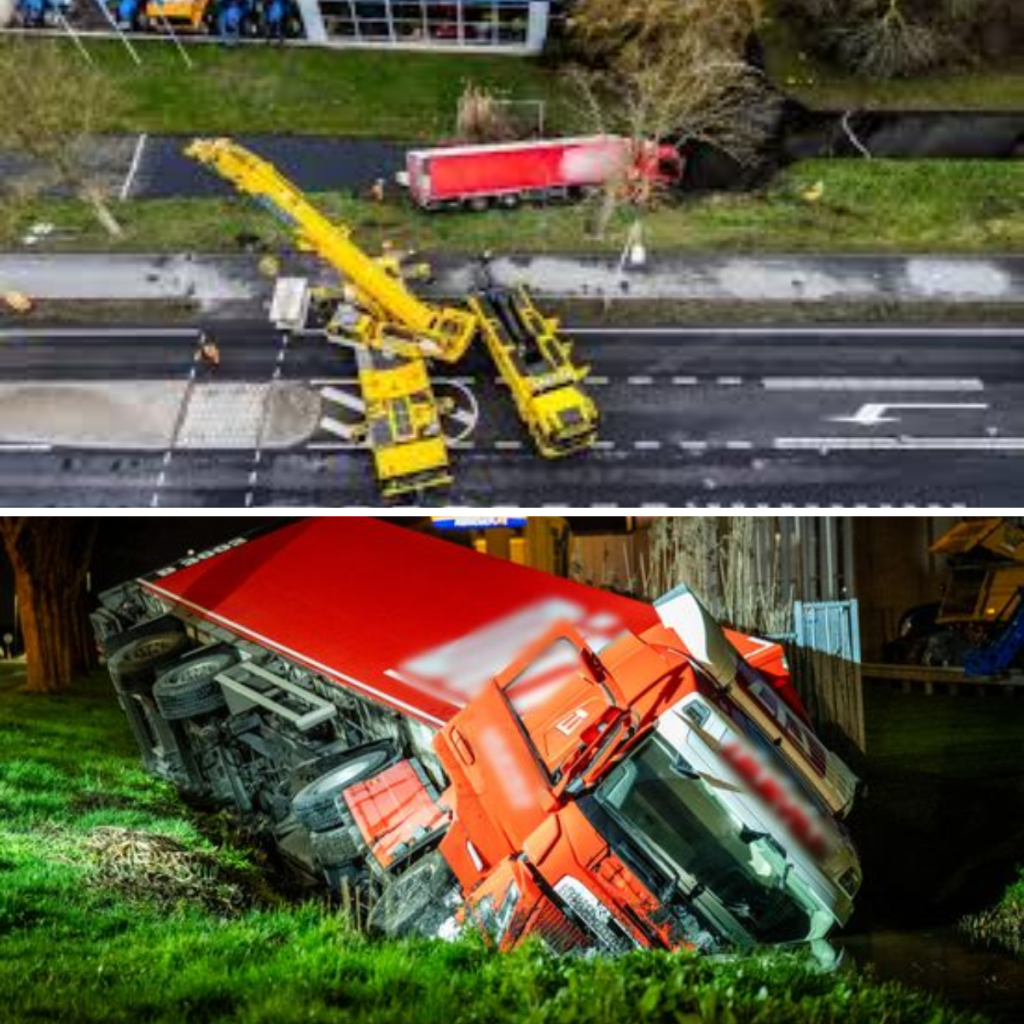 De vrachtwagen kwam in de sloot terecht