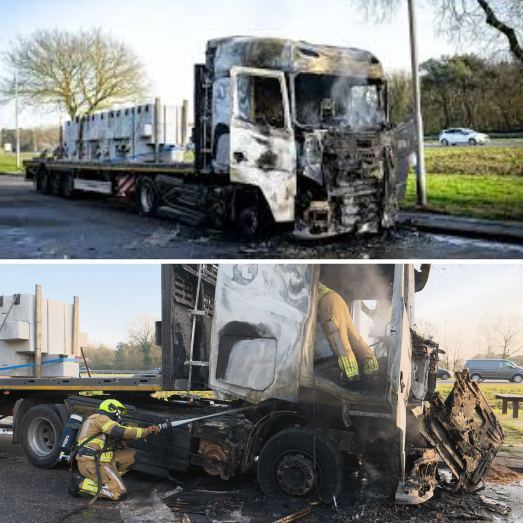 De brandweer was snel ter plaatse, maar kon niet voorkomen dat de trekker volledig uitbrandde.
