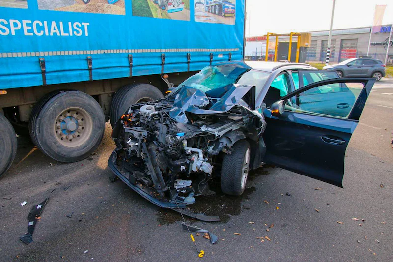 Een 28-jarige automobiliste uit Hengelo is dinsdagochtend in Apeldoorn vol op de trailer van een vrachtwagen gereden. Haar auto raakte daarbij total loss.